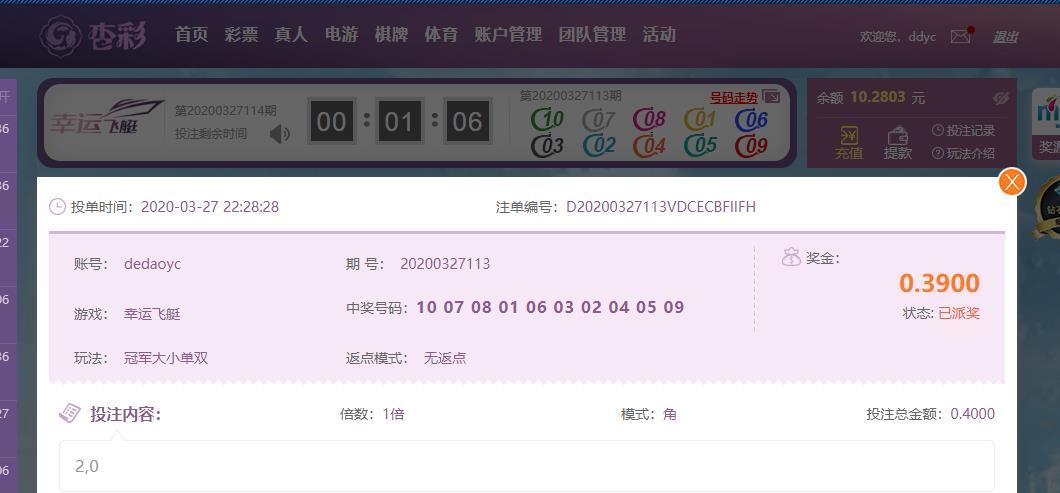 [VIPtou]viptou[/VIPtou]去玩了一把幸运飞艇 选择大小单双玩法 ,押的大单 结果还不错,也算幸运的出来了