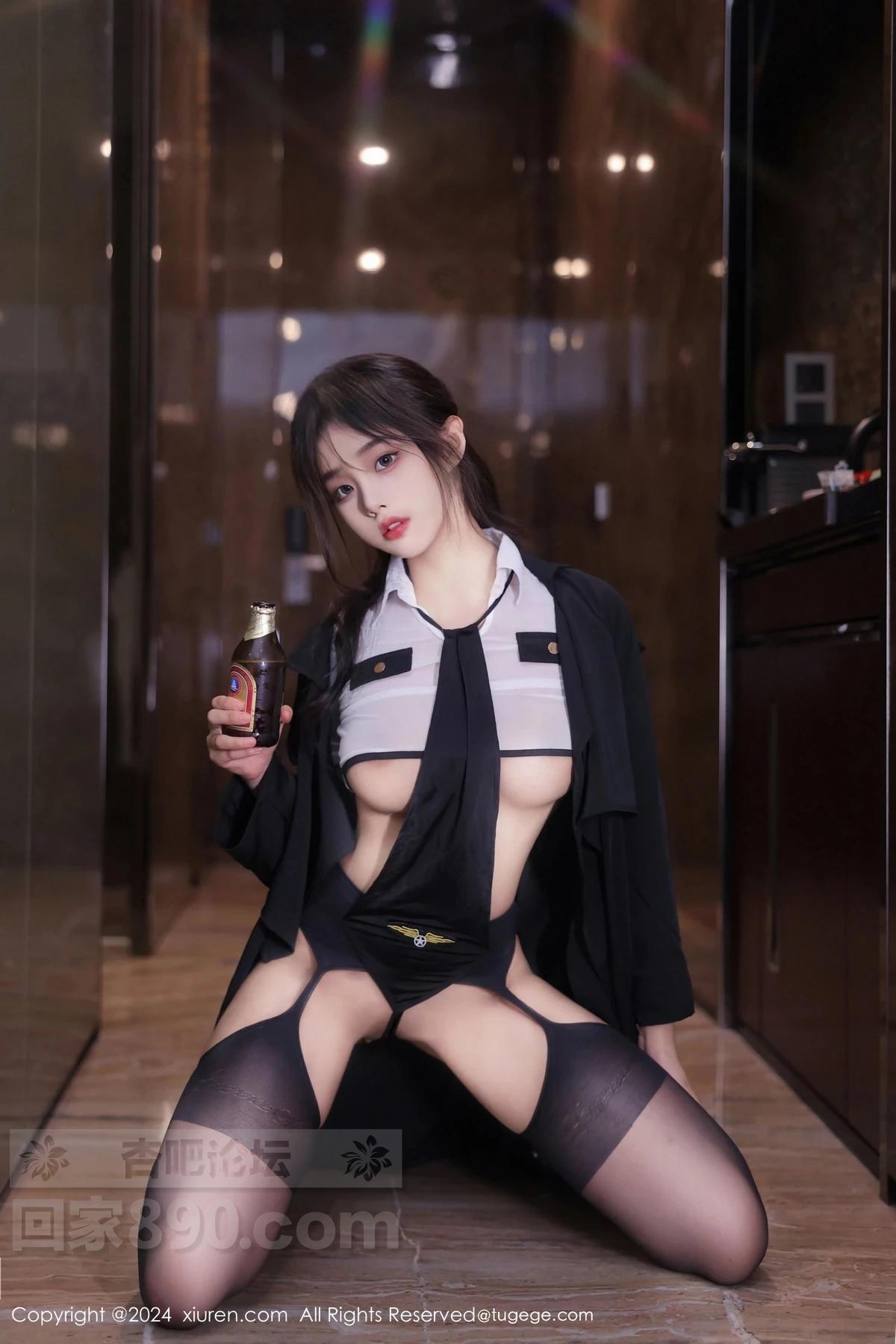 [美腿翘臀] 新人模特王心悦性感白色薄透情趣制服配黑丝吊袜撩人诱惑写真【50P】 |