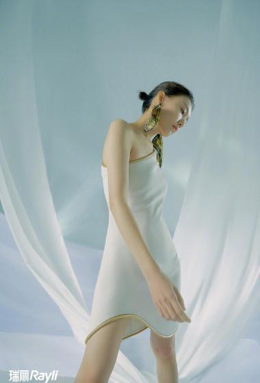 美女高露各种穿搭白色背景长裙优雅时尚【10P】