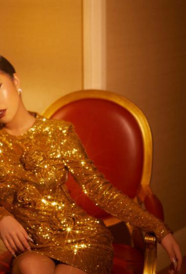 美女王菊金属光泽紧身裙闪耀包裹完美身材【10P】