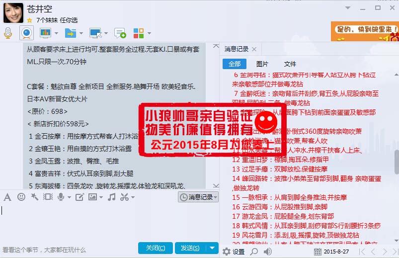 【小狼有话说】:工作室性质的团体,里面妹子很多,回复很迅速,服务很前面,很多新的品种,呵呵,不知道哪位狼友有福气去享受哦,速度去哦。优质资源可不多哦,回来记得回复分享你的经验,发点你的体会,有奖励哦!